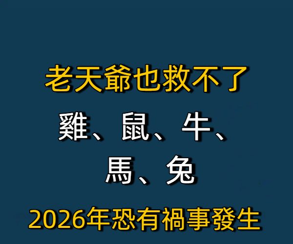 「雞、鼠、牛、馬、兔」2026年恐有禍事發生,千萬要留心!