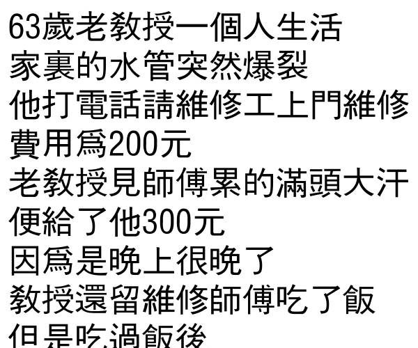 老教授請師傅修水管,卻聽到師傅說…
