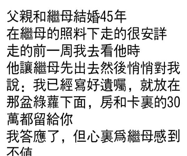 父親偷偷立遺囑,繼母竟然說…