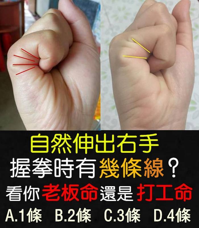 D:老板命!這種人頭腦靈活,聰明機敏。再加上 聽領導的話,幹事也用心,因而不時會得到上級 提拔,出任中層或以上領導職位。值得一提的 是,這種人十分顧家,為人專注,作為成家對象 是對比好的選擇