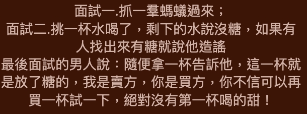 面試官:「有1000杯水,只有一杯水放糖了」怎麼辦,男子「高情商回答」被當場錄取
