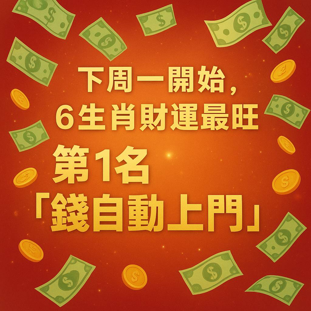 恭喜屬龍的朋友!下週你將是十二生肖中財運最旺的冠軍!你的財星高照,簡直是擋都擋不住!你可能會發現各種賺錢機會自動找上門來,無論是突如其來的專案、意外的獎金,或是投資的巨大回報,都將讓你感受「錢自動上門」的奇妙體驗。你的努力與好運完美結合,財富將如泉湧般注入。