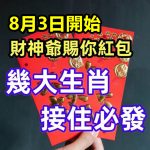 屬雞人最近兩年一直沒能賺到錢,8月3-5日財運很旺,鹹魚大翻身,數錢數到手發軟的生活的壓力也很大,鈔票如雨,富得流油,強化了生肖雞的財運,生肖雞有橫財可發,能賺大錢享富貴。