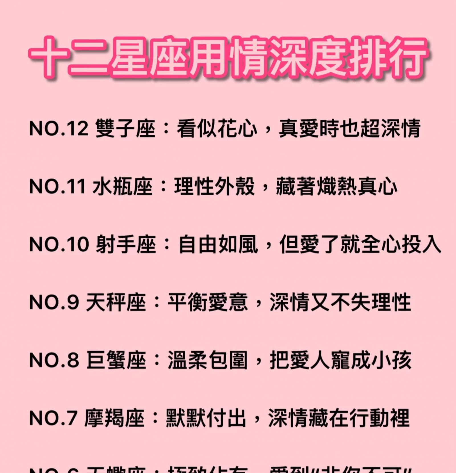 你總是將自己最好的一面表現在別人面前,從來不會露出脆弱的那一面,追求完美和嚴以律己就是你的代名詞,你在朋友間的評價非常好,新的一年不如稍微放輕鬆一點,不要對自己咄咄逼人也和朋友的關係更拉近些,今年的你在工作上也許會有很大的突破。