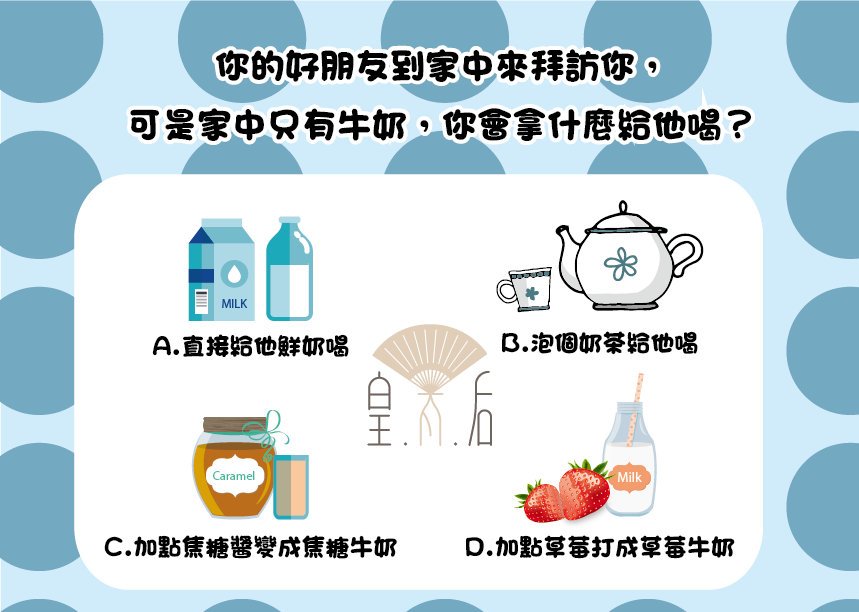 你的好朋友到家中來拜訪你,可是家中只有牛奶,你會拿什麼給他喝?