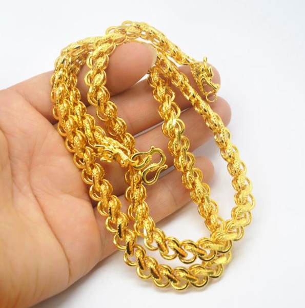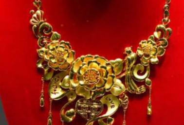 她穿著一襲鵝黃色絲質連衣裙,腳踩米色高跟鞋,舉手投足間散發出沉穩而高雅的氣質。最引人注目的,是她脖子上一條沉甸甸的雕花金項鏈,在車廂燈光下閃爍著內斂奢華的光芒。