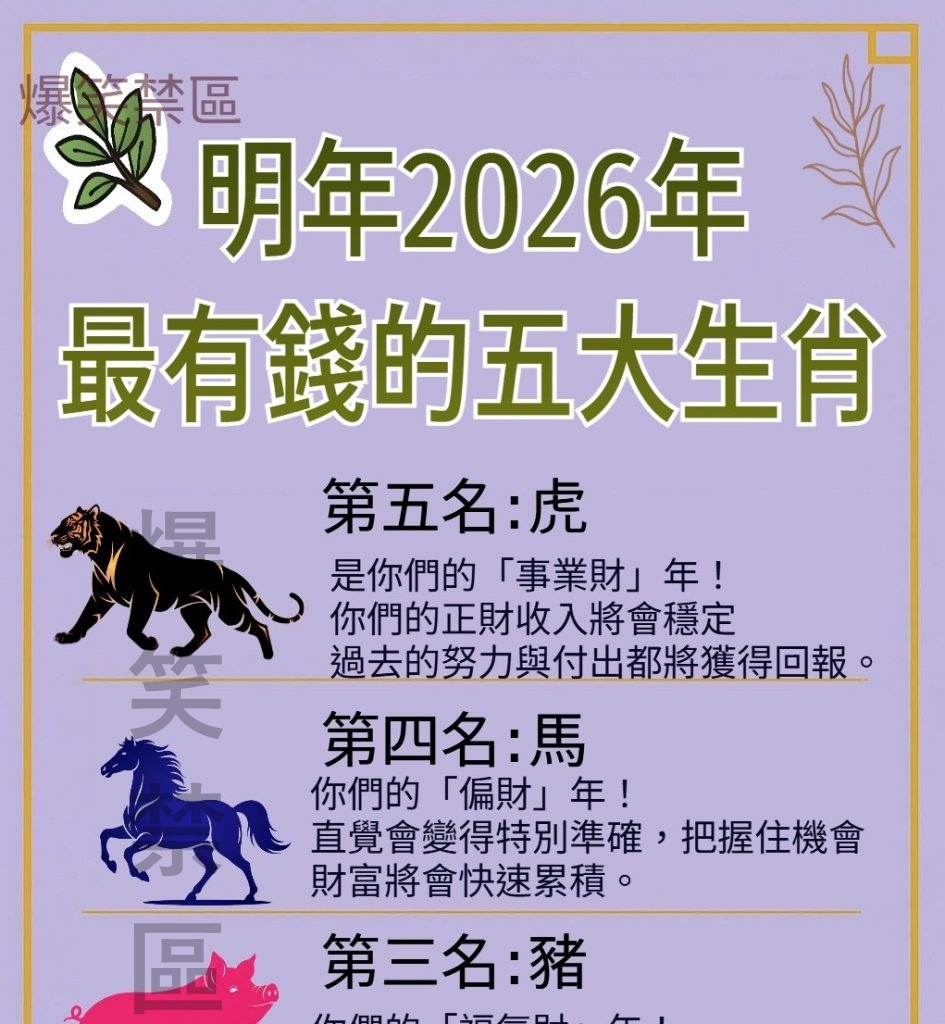 恭喜屬虎的朋友!2026年是你們的「事業財」年!你們的企圖心與魄力將得到最大發揮,在事業上會有很大的突破,無論是升職加薪還是創業,都能夠取得令人羨慕的成就。這一年,你們的正財收入將會穩定且豐厚,過去的努力與付出都將獲得回報。