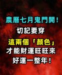 農曆七月俗稱「鬼月」,隨著鬼門開啟,陰陽能量交會,不少人容易感受到生活上的變動。命理專家提醒,「屬鼠、屬兔、屬馬、屬龍、屬狗」在鬼月期間特別要注意,雖然挑戰多,但若能謹慎應對,也能逢凶化吉,迎來新機會。