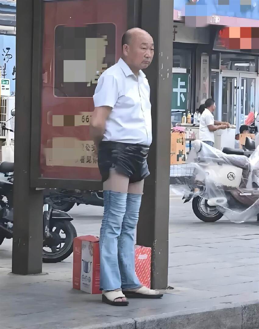 他的打扮成了街頭最突兀、甚至有些刺眼的「風景」。