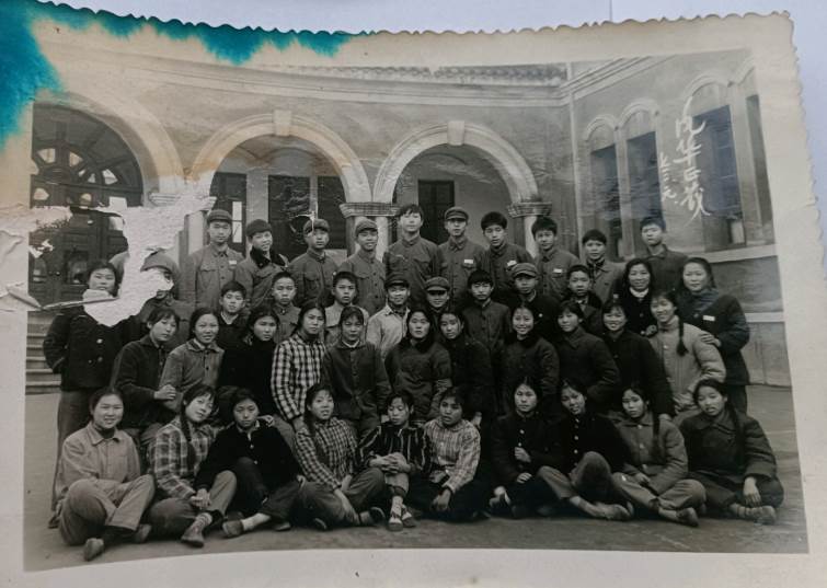 照片裡,一位氣質清秀、神情自信的青年,穿著筆挺的中山裝,站在巨大機床前微笑著。另一張,是他和同學們在校門口的合影,意氣風發。