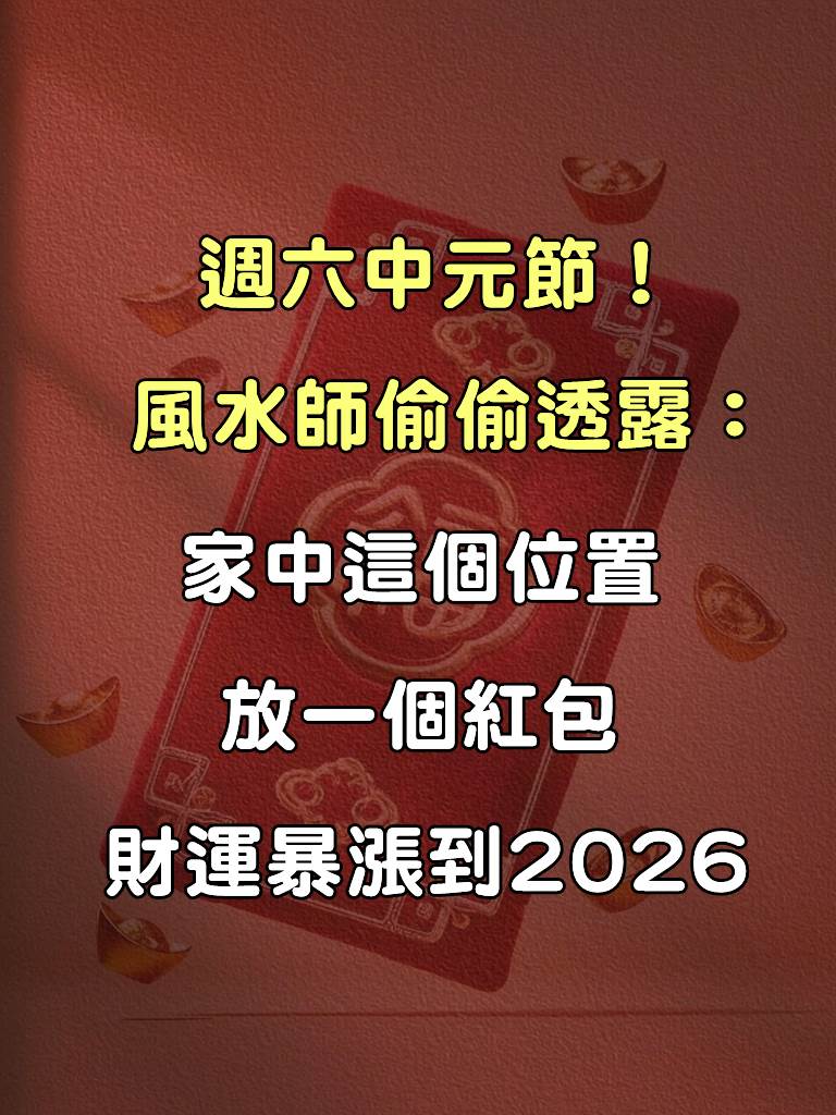 週六中元節!風水師偷偷透露:家中這個位置「放一個紅包」財運暴漲到2026