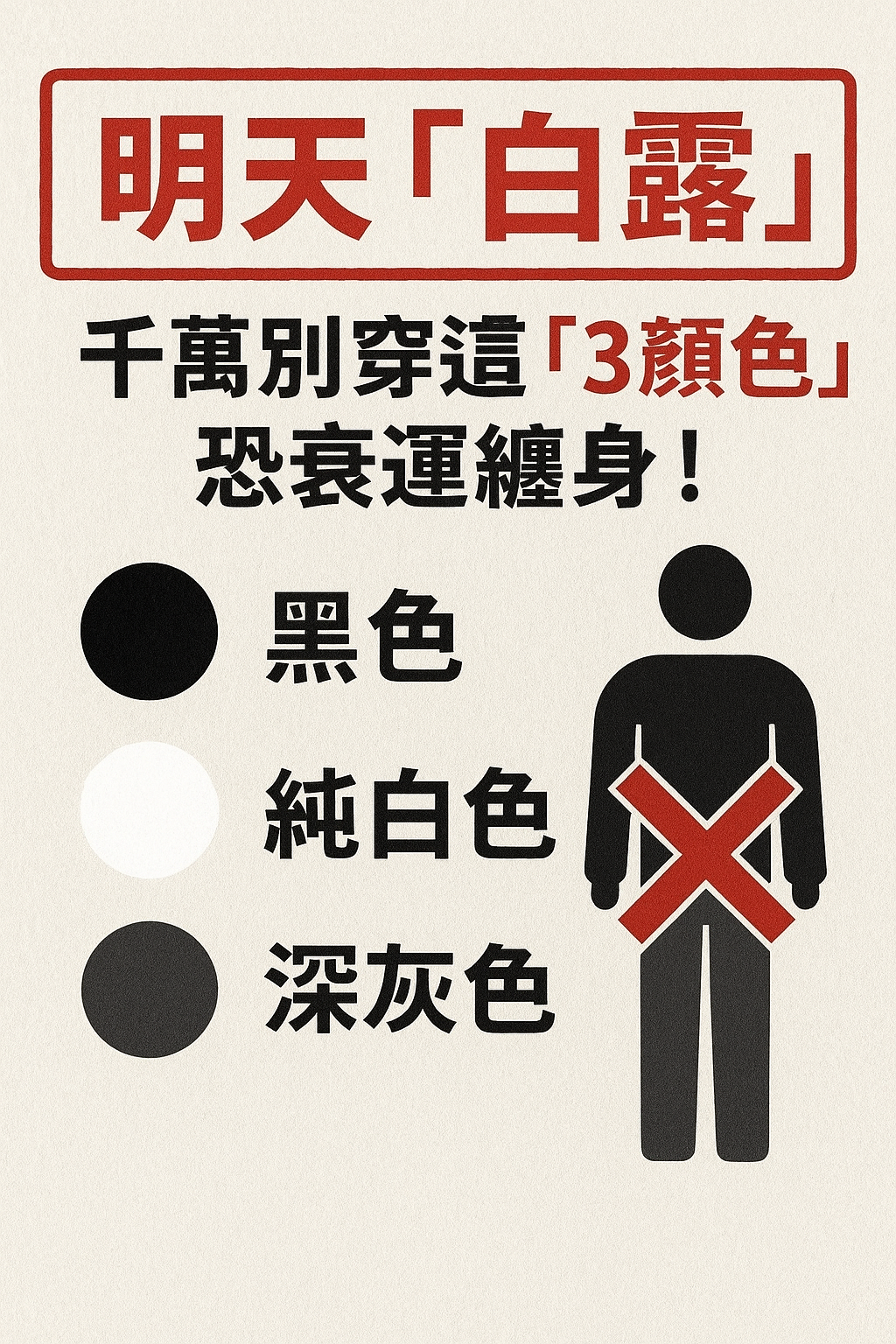 白色雖然清爽,但在傳統文化裡屬於喪服之色,若在白露節氣這樣的轉折時刻穿純白,容易與陰氣相應,可能引來不必要的困擾。