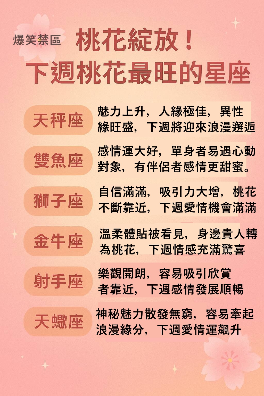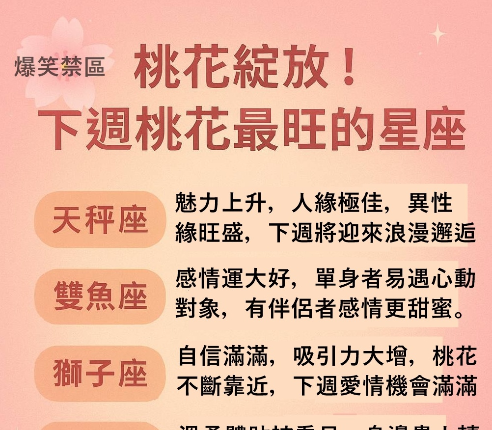 準備好迎接浪漫的下週了嗎?以下星座將迎來桃花盛開,愛情機會不斷!