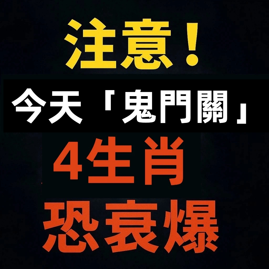 今天就是農曆七月最後一天,「鬼門關」正式到來!傳說好兄弟在這天回陰間前,陰氣最重、最容易「找交替」。不少命理老師提醒,這一天最好低調一點,尤其是 蛇、豬、虎、猴 這四個生肖,特別容易「中鏢」,小心運勢一夕翻轉,衰到年底。