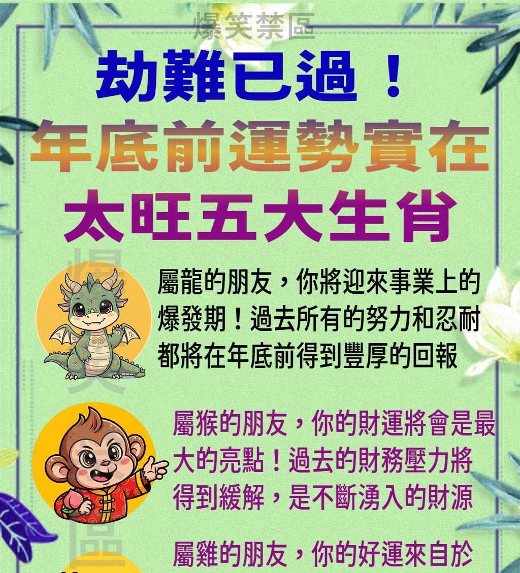 恭喜了!如果你在今年初或年中經歷了各種挑戰、壓力或不順遂,那些「劫」已經正式過去了!從現在開始直到年底,宇宙將為以下五個生肖開啟順遂模式,運勢將會旺到讓人羨慕!