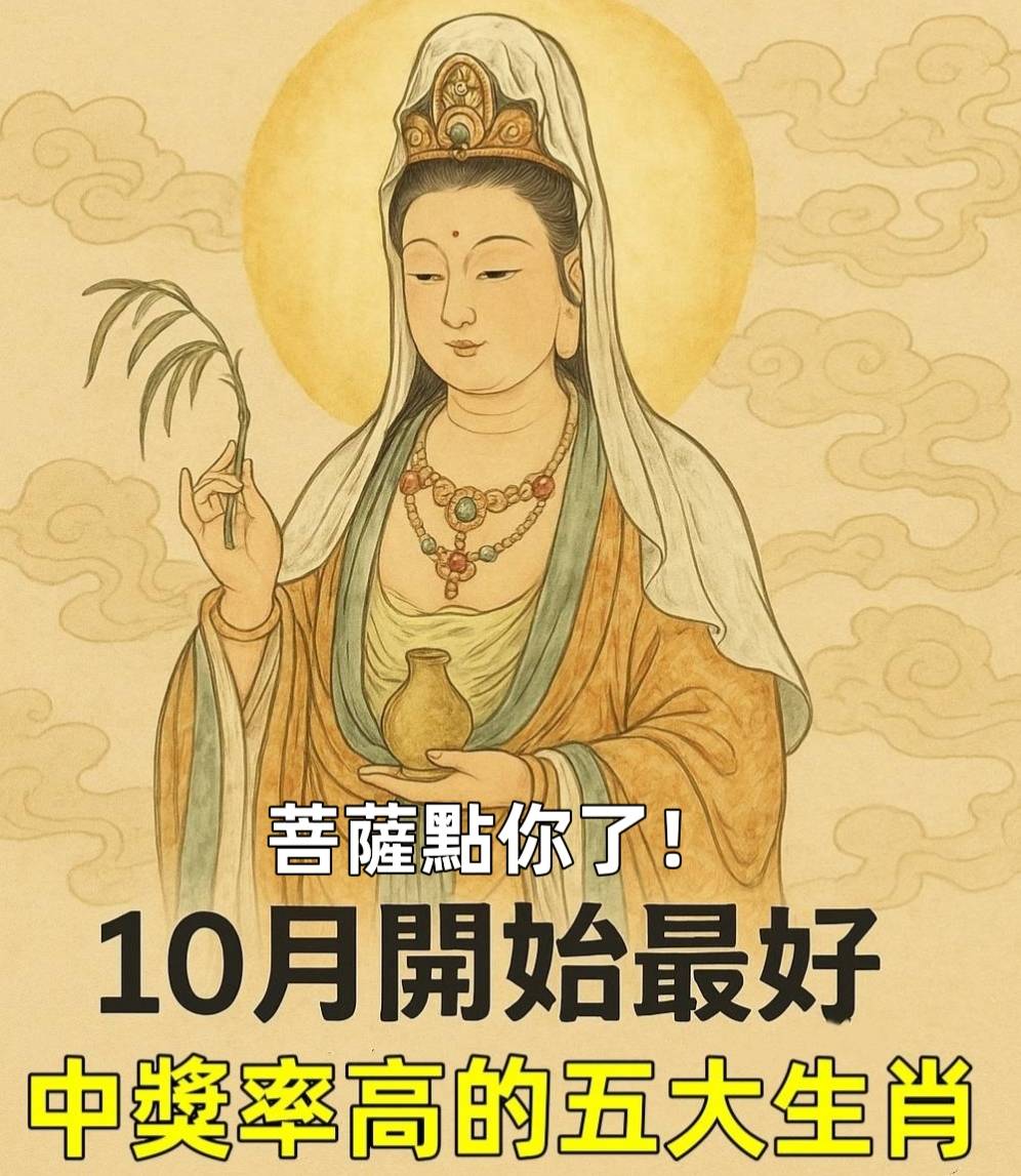 恭喜這五個生肖的朋友!進入十月,你們彷彿被慈悲的菩薩點名加持,整體運勢將一路攀升,不僅生活順遂,就連財運和中獎機率都高人一等!無論是發票、抽獎還是樂透,都建議你們在這個月可以小試手氣,讓好運財富雙豐收!