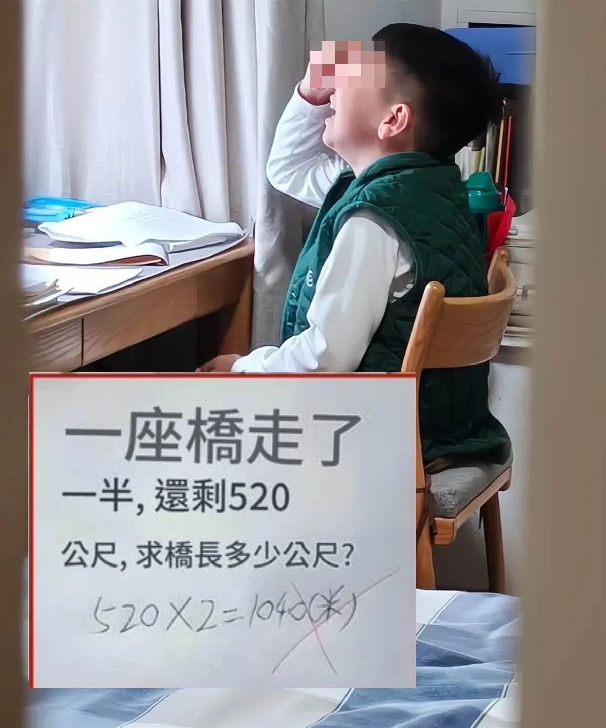 有專業人士現身解釋:「一座橋走了一半,一半就是½。½有了,還剩520米,520這個數據也有了。但是,算式中的那個2是從哪里來的 一座橋,走了一半,那剩余的沒有走過的有多少?(1-1/2)=1/2,還剩1/2。
