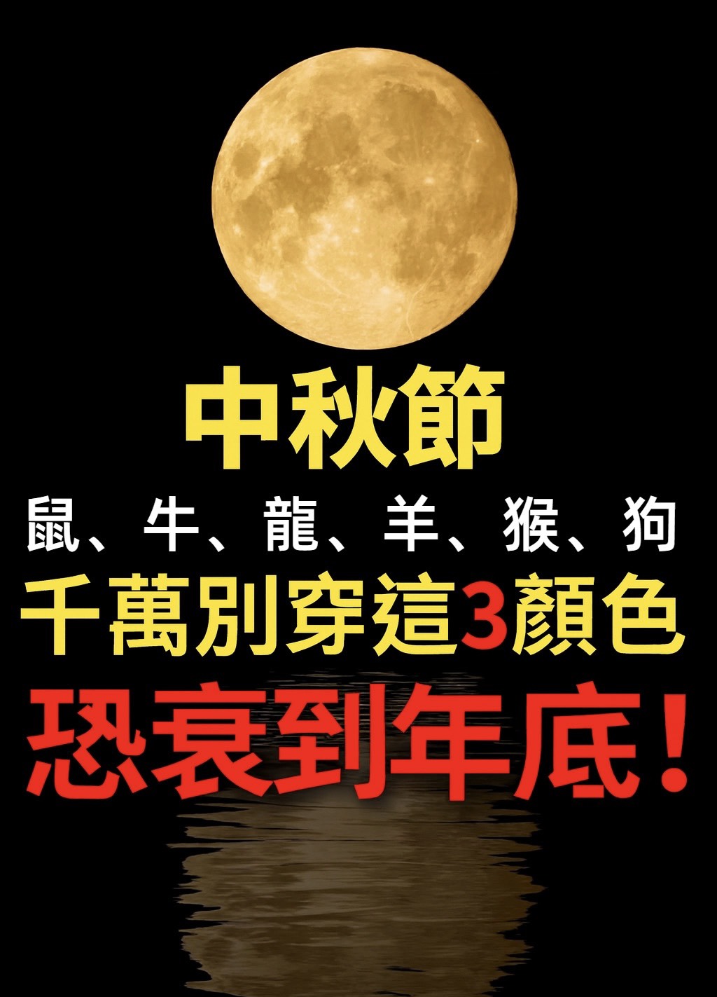 中秋節不只是賞月、團圓吃月餅的節日,更是牽動能量轉折的重要時刻。尤其今年的中秋恰逢「陰陽交替」的節氣點,穿錯顏色不僅會讓好運溜走,甚至可能讓霉運纏身、財氣受阻。命理師特別提醒,屬鼠、牛、龍、羊、猴、狗的朋友們,中秋節這三種顏色千萬別碰,否則恐怕一衰到年底!