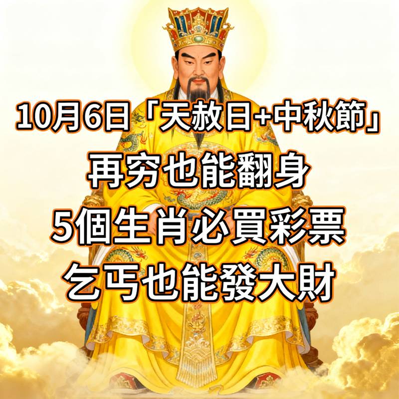 今天「天赦日+中秋節」這5個生肖必買彩票,乞丐也能發大財,尤其這個屬相!再窮也能翻身! Posted by 小紀 6 十月, 2025 男是皇帝命「女是貴婦命」的6個農曆出生吉日|佛道禪心 歡迎來佛道禪心觀看更多風水命理影片👉https://lihi3.cc/VEY5Q – – – – – – – – – 延伸閱讀——————— 想知道愛情走向嗎?免費測算馬上知道>>>>https://lihi.cc/Ozo8m 閱讀全文 (1364) 為你推薦不是迷信!今天「天赦日」,起床後在枕頭下放一物,隔天就有橫財降臨!全家好運連旺20年!中秋節「屬鼠 屬牛 屬龍 屬蛇 屬馬 屬雞 屬豬 」一定要看!今年最後轉運機會「天赦日」:這5個生肖必買樂透,乞丐也能發大財!明天8月7號【天赦日+立秋】要穿這兩個「顏色」才能財運旺旺來,好運一整年!2025年第一個「天赦日」!千萬別穿這「3顏色」恐衰整年!天赦日「屬鼠 屬牛 屬龍 屬蛇 屬馬 屬雞 屬豬 」一定要看! 小紀 6 十月, 2025