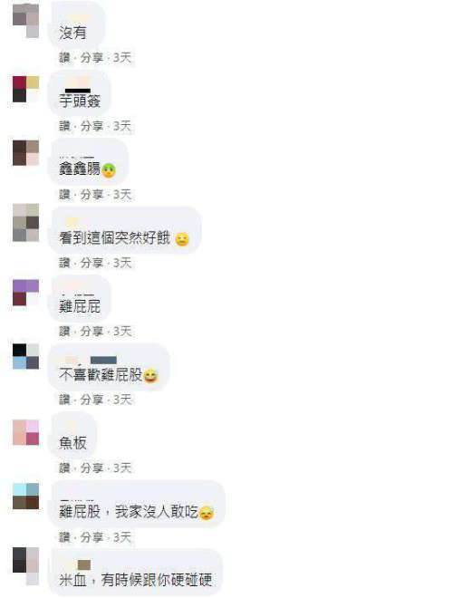 「芋頭籤」、「百頁豆腐」、「柳葉魚」也被網友點名不會點。網友直呼「芋頭籤,只要有芋頭都不要」、「雞屁 股,我家沒人敢吃」、「雞脖子不會夾」、「芋頭糕,炸玩吃起來像吃炸肥 肉」、「豆干,炸完超乾的」。