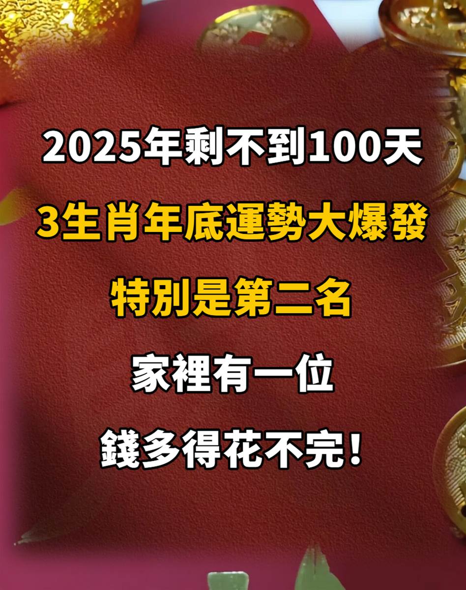2025年只剩不到100天,對以下三個生肖來說,財運、事業、人緣都可能迎來大爆發!特別是第二名,如果家裡有這位,錢多得花不完💰