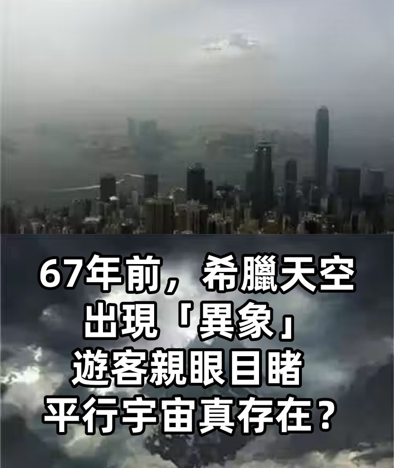 1959年夏天,希臘一座臨海小鎮的天空突然出現罕見「異象」——濃厚雲層中浮現出一道明亮的裂縫,內部似乎閃爍著光影與移動的輪廓,彷彿另一個世界的「入口」。當時在場的遊客紛紛驚呼,有人甚至以相機拍下這離奇畫面。多年後,這組照片被重新翻出,引發網友熱議:「這該不會是通往平行宇宙的門吧?」