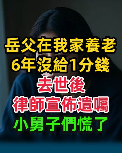 岳父身體本來不錯,但去年突然病倒,送醫後沒多久就離開了。葬禮結束後,幾個小舅子突然出現,臉上滿是焦慮。原來律師通知大家,岳父在過世前立了遺囑,要正式宣讀。大家心想老人家沒什麼積蓄,頂多就是老家的一棟房子,沒什麼好爭的,卻沒想到下一刻的內容讓全場愣住。