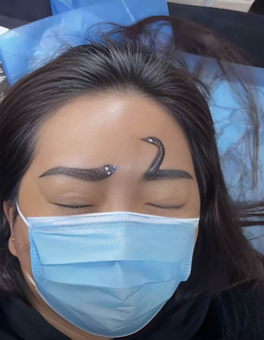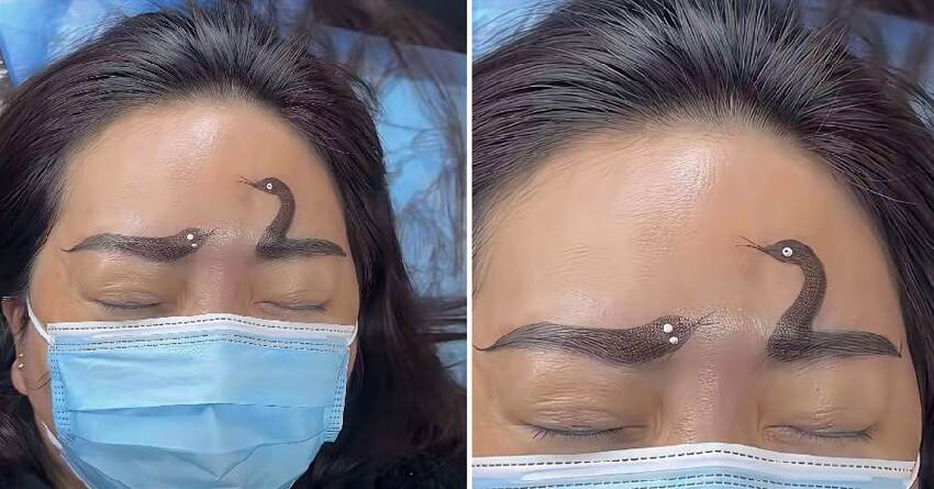 蜿蜒的紋路盤踞在她眉骨上,與傳統柔美的眉形異常。