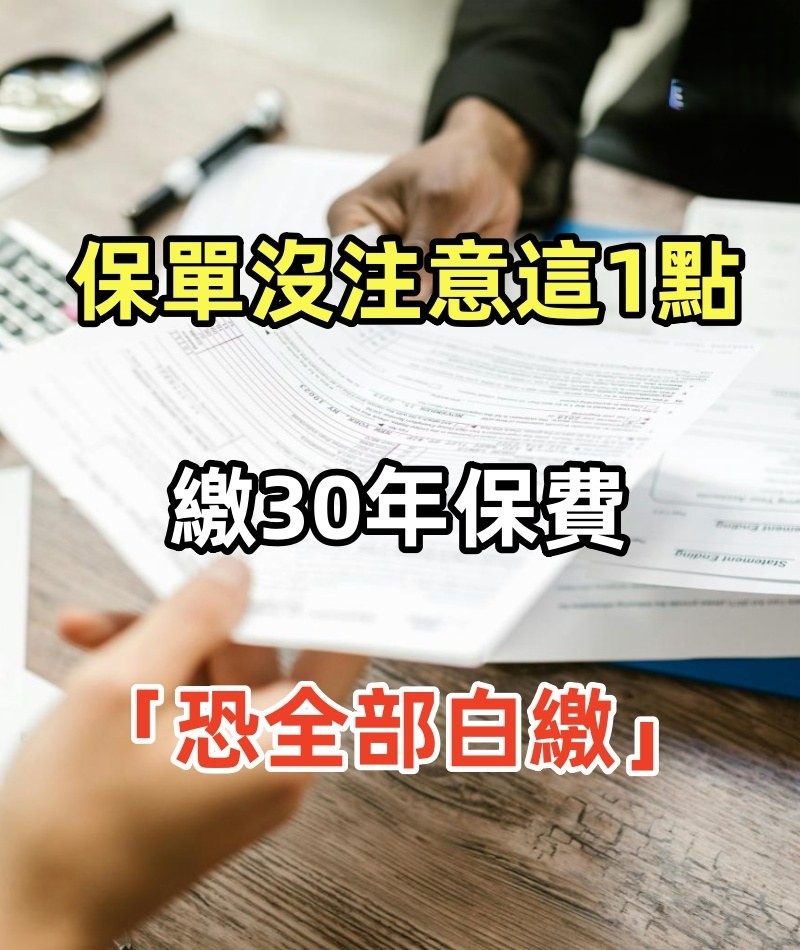 不少人為了保障未來,早早投保各種壽險、醫療險,但有網友最近發文提醒:「保單上有一項細節沒注意,可能讓你繳了幾十年保費全白費!」文章曝光後,引起上萬人轉傳討論。