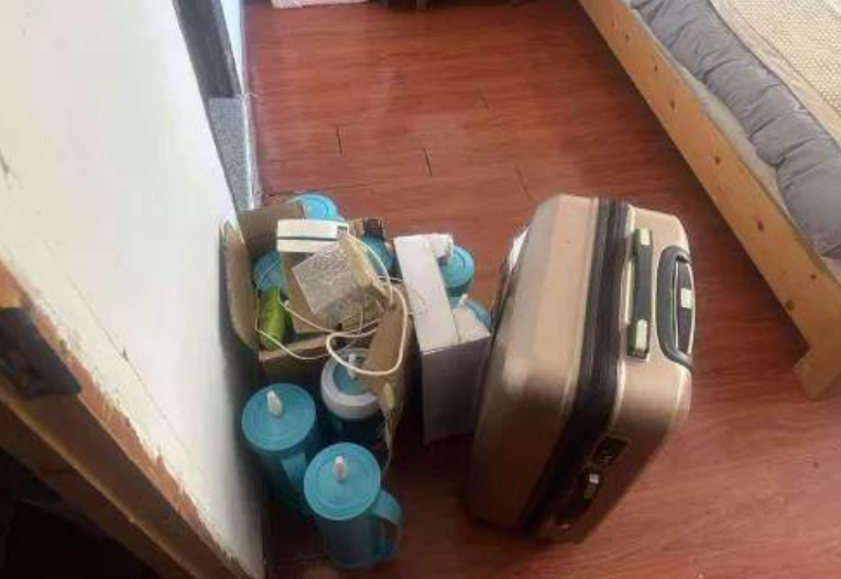 她嚇得立刻放下瓶子,轉而去查看房間其他角落,結果在櫃子旁發現好幾個紙盒,裡面竟也塞滿同樣顏色的瓶瓶罐罐,看起來整齊得很像「有人特意留下的」。