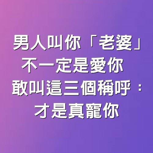 我們習慣了聽到愛人對自己說「老婆」,或許會認為這是愛的象徵。然而,真正愛你的人,不僅僅停留在這個簡單的稱呼上。那麼,若男人敢用下面這三個稱呼來稱呼你,那就說明他對你愛到骨子裡。