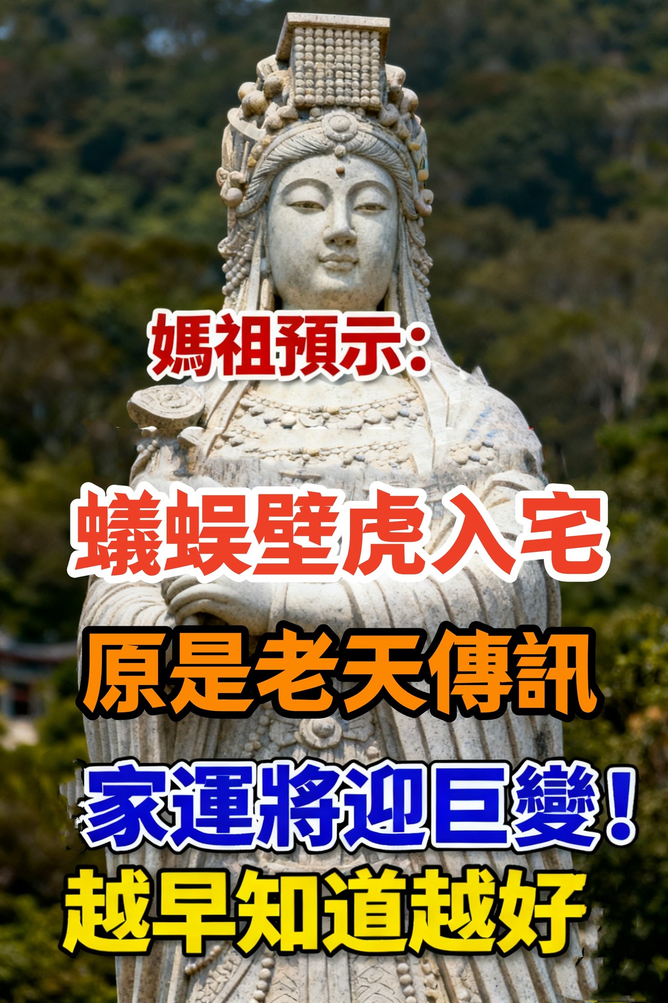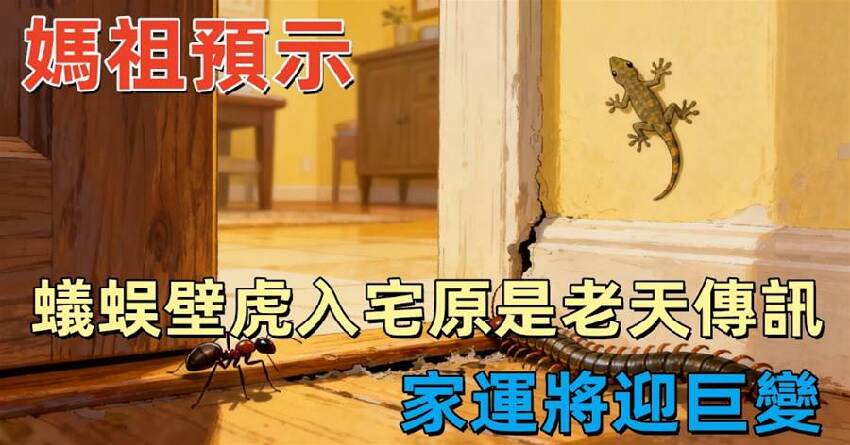 民間流傳一句話:「天有異象,地有徵兆。」其實在家中出現一些小動物時,往往並非單純偶然,而是天地氣場變化的暗示。據信仰說法指出,媽祖曾多次在託夢中提醒信徒:「蟻、蜈、壁虎入宅,乃天示之兆。」這些看似平凡的生靈,其實是老天向人間傳遞訊息的媒介,若懂得察覺、順勢而為,家運便能迎來轉變。