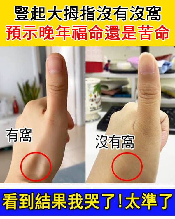 ✦【二、豎起大拇指 有窩:越老越順、福氣越來越厚】