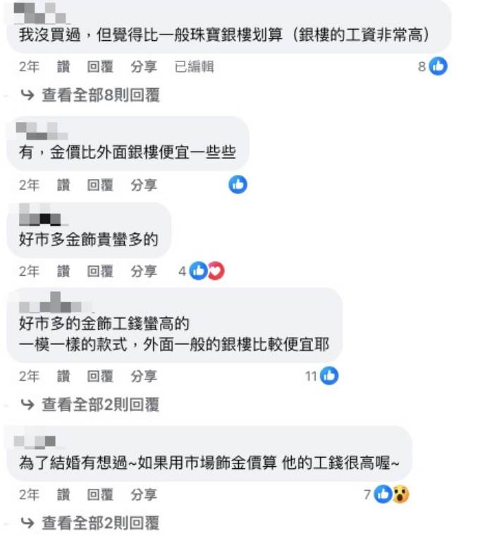 也有不少人表示他們確實曾經購買過好市多的金飾,一些人認為這裡的金價相比外面的珠寶店更加實惠,但也有人表示:「好市多的工錢很高,和銀樓相比并沒有明顯優勢。」