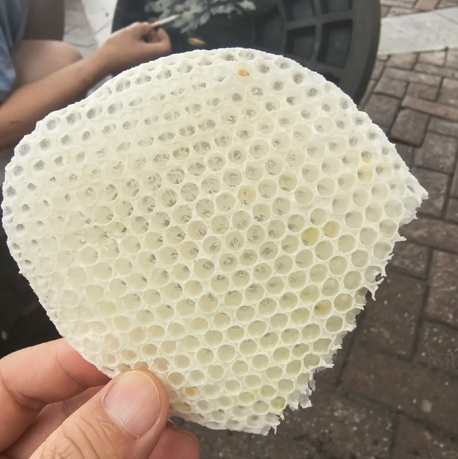 最後她才知道這其實是蜂巢,不過蜜蜂還沒進住,因此算是「空屋」,原PO也拍到外公房間裡有好多死掉的蜜蜂,她表示可能是因為窗外種了很多荔枝樹和桂花樹,才會有很多蜜蜂不小心飛進來…