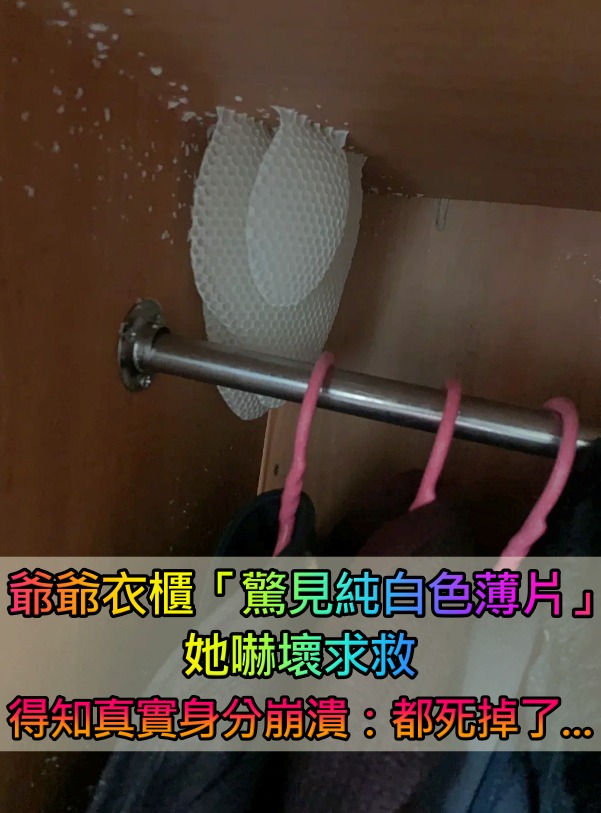 一名網友就在小紅書上發問,他表示在外公的衣櫥裡看到好幾片奇怪的白色格狀物,大小不一但十分整齊的黏在櫃子深處,看起來超級詭異,他忍不住拍下來問大家這到底是什麼東西?