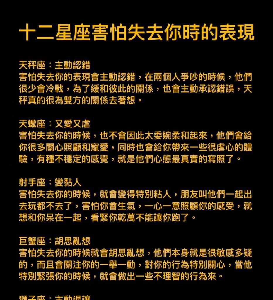 害怕失去你的表現是主動認錯,在兩個人爭吵的時候他們很少會冷戰,為了緩和彼此的關係,也會主動承認錯誤,天秤真的很為兩個人的關係著想。