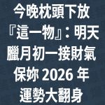 2026 財富預測: 你的財運來自「人脈財」。明年你不需要太辛苦,財富會透過「合作」或「介紹」自動上門。你那種**「不爭而獲」**的特質,會讓你在 2026 年底積累出一筆可觀的跨年私房錢。