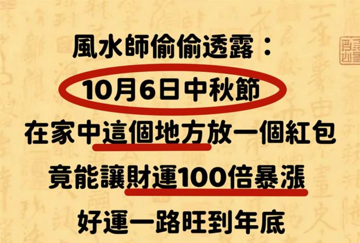 風水師偷偷透露:10月6日中秋節在家中這個地方放一個紅包,竟能讓財運100倍暴漲,好運一路旺到年底!