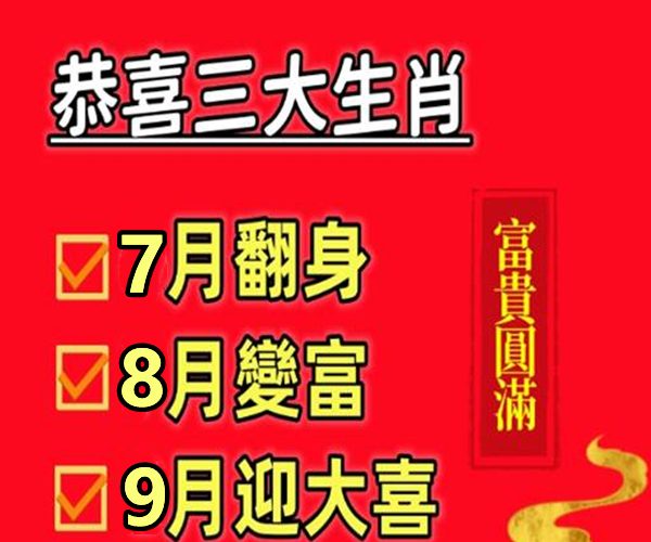 恭喜三大生肖,7月翻身,8月變富,9月迎大喜,富貴圓滿