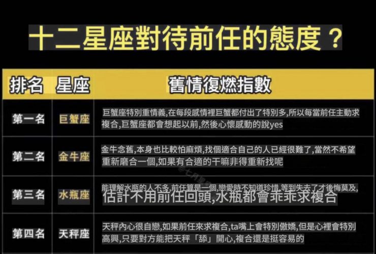 前任一出現就淪陷!復合率爆表的星座排行榜