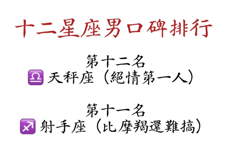 十二星座男口碑排行!