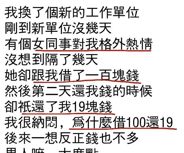 女同事借100還19,竟然是這個意思…