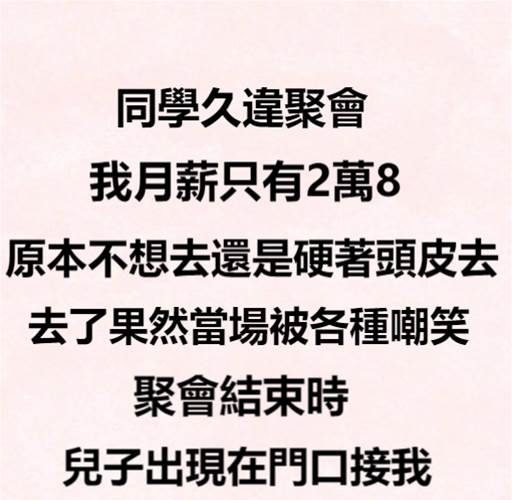 同學久違聚會!我「月薪只有2萬8」被大家各種嘲笑 結束時「兒子來門口接我」全場傻眼