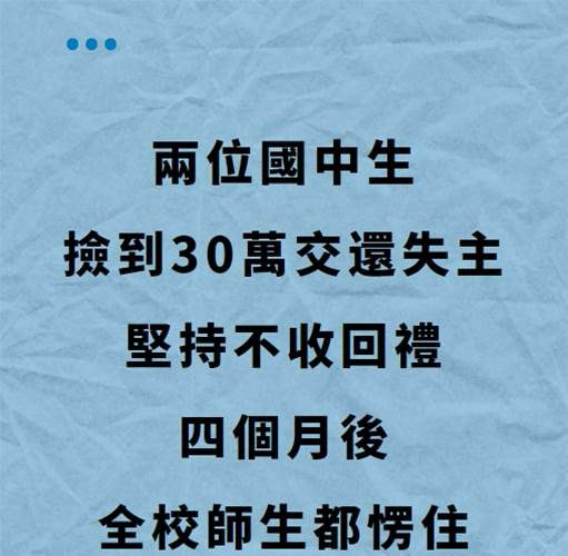 國中生「撿到30萬交還失主」堅持不收回禮!4個月後全校師生都愣住