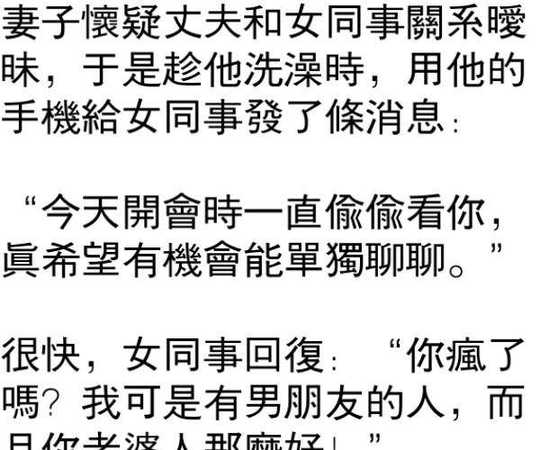 妻子懷疑丈夫和女同事有染,沒想到阿…