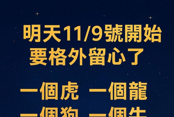 明天11/9號開始要格外留心了,一個虎,一個龍,一個狗,一個牛必看