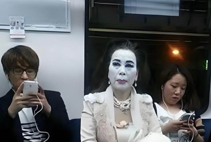 夭壽哦!捷運驚現恐怖「白臉女子」,眼尖網友發現她脖子「1細節」後狂刷:快報警
