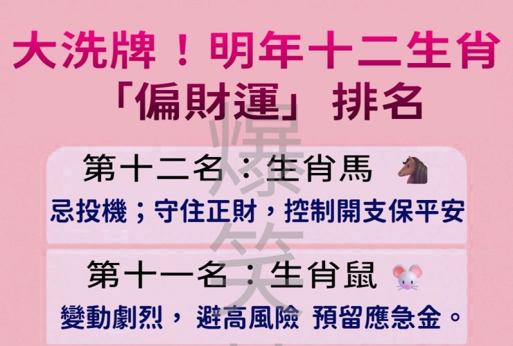 大洗牌!明年 十二生肖「偏財運」排名