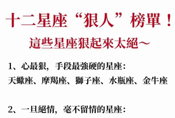 十二星座“狠人”榜單!這些星座狠起來太絕!